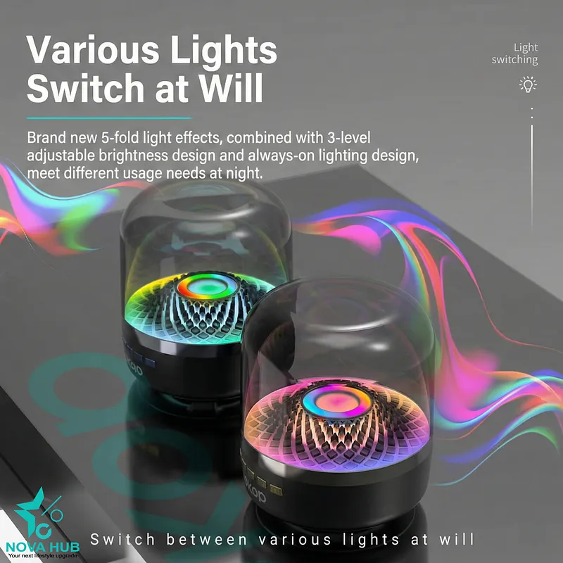 Enhance your space with the built-in dynamic RGB LED breathing light, designed to complement your music and environment. The colorful lighting effect makes this a stylish speaker with light, perfect for room decoration, night-time ambience, casual parties, and gaming setups. It is an ideal mini bluetooth speaker with lights for users who value both sound and visual appeal.