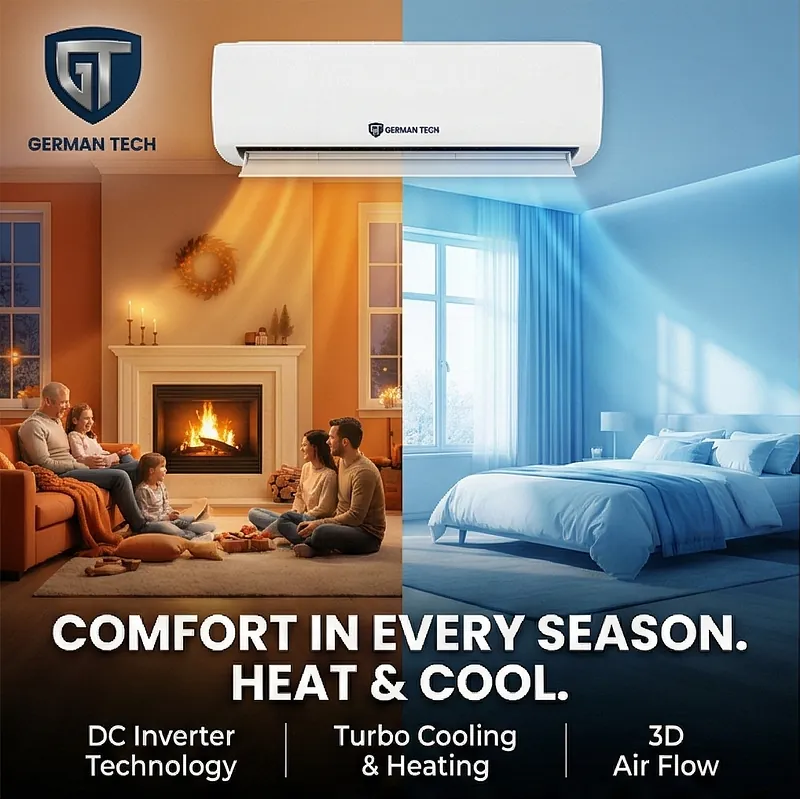 Year-Round Utility: The Hot & Cold Advantage Why buy a heater for winter and an AC for summer? The German Tech GT-1.5 Ton-Inverter-Eco is a 2-in-1 solution. The Heat Pump technology is significantly more energy-efficient than traditional electric rod heaters, making it the smartest way to keep your family warm during the Himalayan winters.
