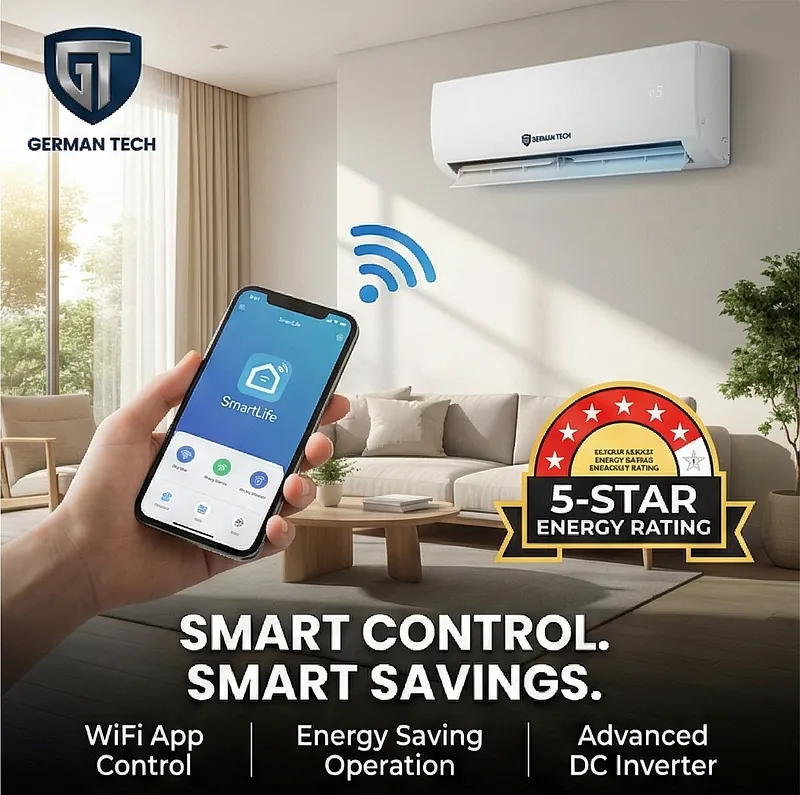 The Smart Home Revolution: WiFi & App Integration Imagine driving home on a hot July afternoon and turning on your AC via your phone 10 minutes before you arrive. With integrated WiFi control, the German Tech Smart AC connects seamlessly to your mobile device. Adjust modes, set timers, and monitor energy usage from the palm of your hand. It is the ultimate lifestyle upgrade for the modern Nepali home. Stop searching for your remote and carry the remote in your mobile phone at all times with you.