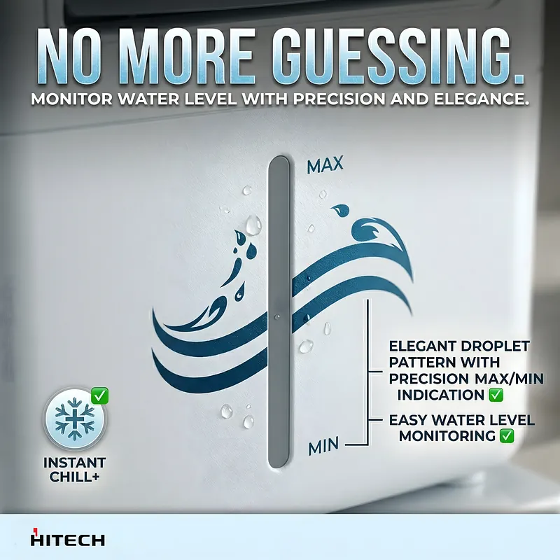 Every detail is designed for your convenience. The intuitive 3-Speed Control (Low, Medium, High) and dual-function knobs let you easily customize your comfort settings. Monitoring the water level is effortless thanks to the beautifully designed, front-facing Water Level Indicator featuring an elegant droplet pattern. And when you need to move the cooler from the living room to the bedroom, the heavy-duty, smooth-rolling Castor Wheels make repositioning a completely effortless task.