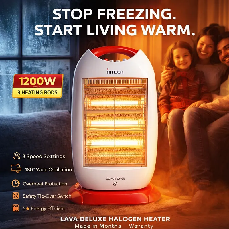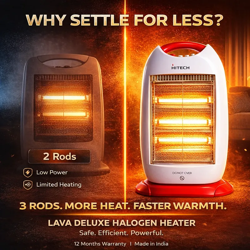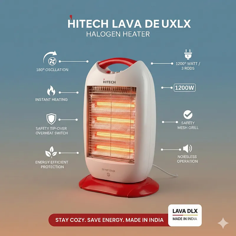 Beat the winter chill instantly with a heating solution that blends power, efficiency, and safety. At Nova Hub, we are dedicated to bringing you your next lifestyle upgrade with appliances that make your home a warm place. The Hitech Malaysia Lava Deluxe Halogen Heater is a premium “Made in India” room heater designed to deliver comforting, high warmth without compromising on your energy bills with 5-star energy rating.