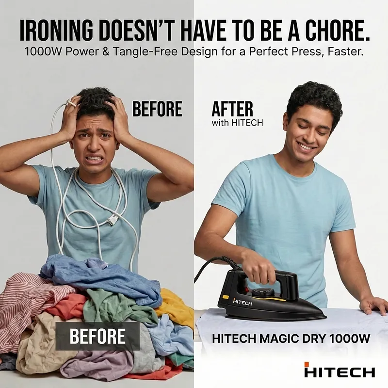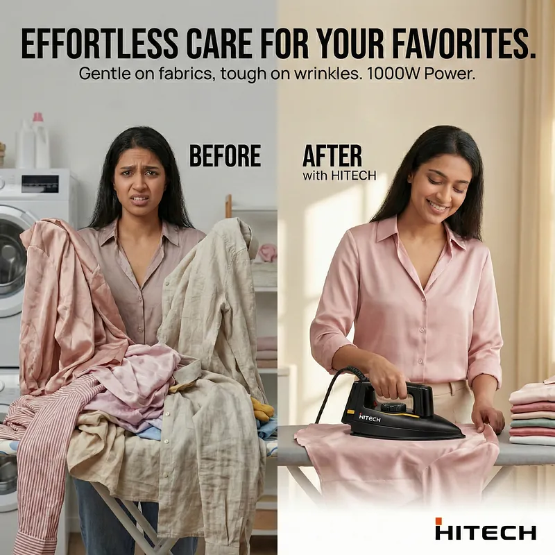 Your Next Lifestyle Upgrade: Hitech Deluxe Dry 1000W Lightweight Dry Iron Ironing shouldn’t be a chore. At Nova Hub, we are committed to providing your next lifestyle upgrade by simplifying your daily routine with high-quality, efficient home solutions. The Hitech Deluxe Dry 1000W Dry Iron is designed for the modern household that values speed, safety, and a perfect finish. Whether you are preparing for a professional meeting or a family gathering, this iron ensures you always step out in style.