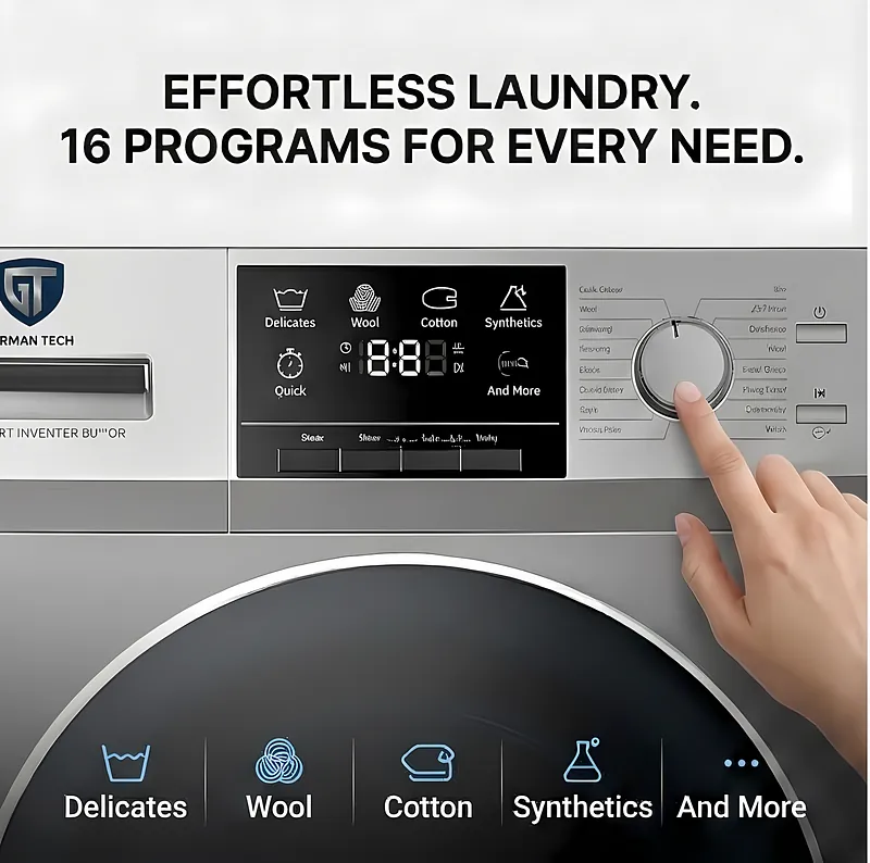 Make laundry simple, efficient, and gentle — choose the German Tech GT-7.5KG Front Load Inverter Washing Machine today.