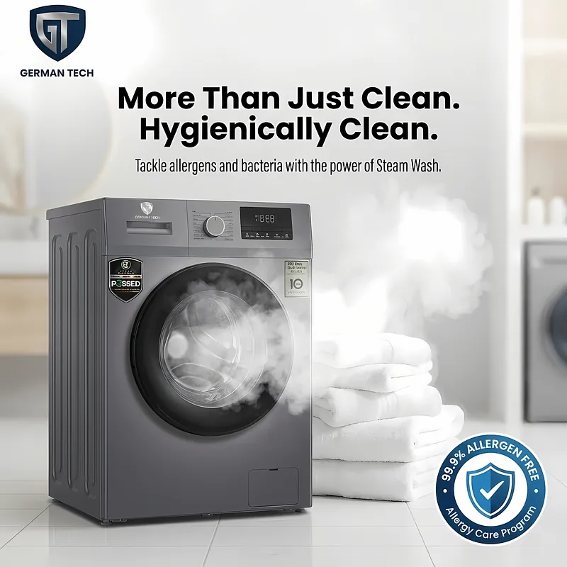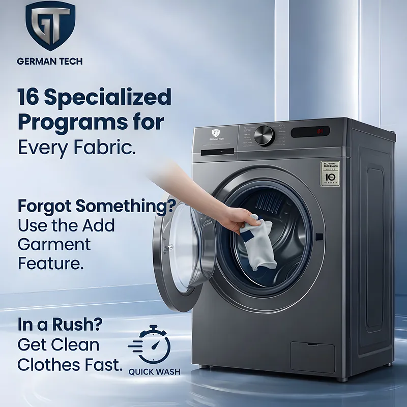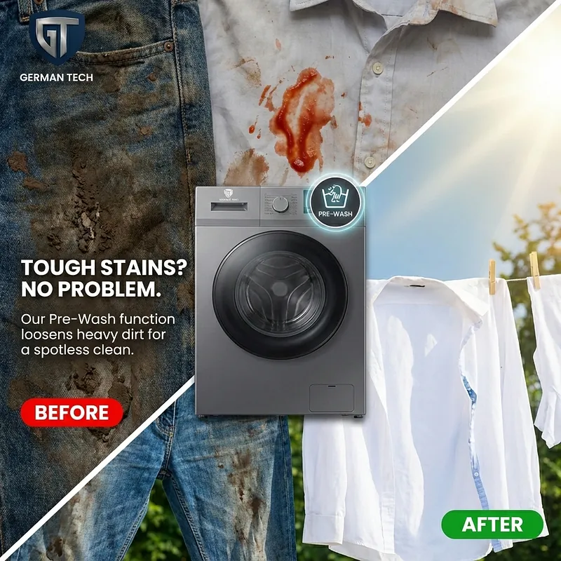 Make laundry simple, efficient, and gentle — choose the German Tech GT-8KG Washing Machine today.