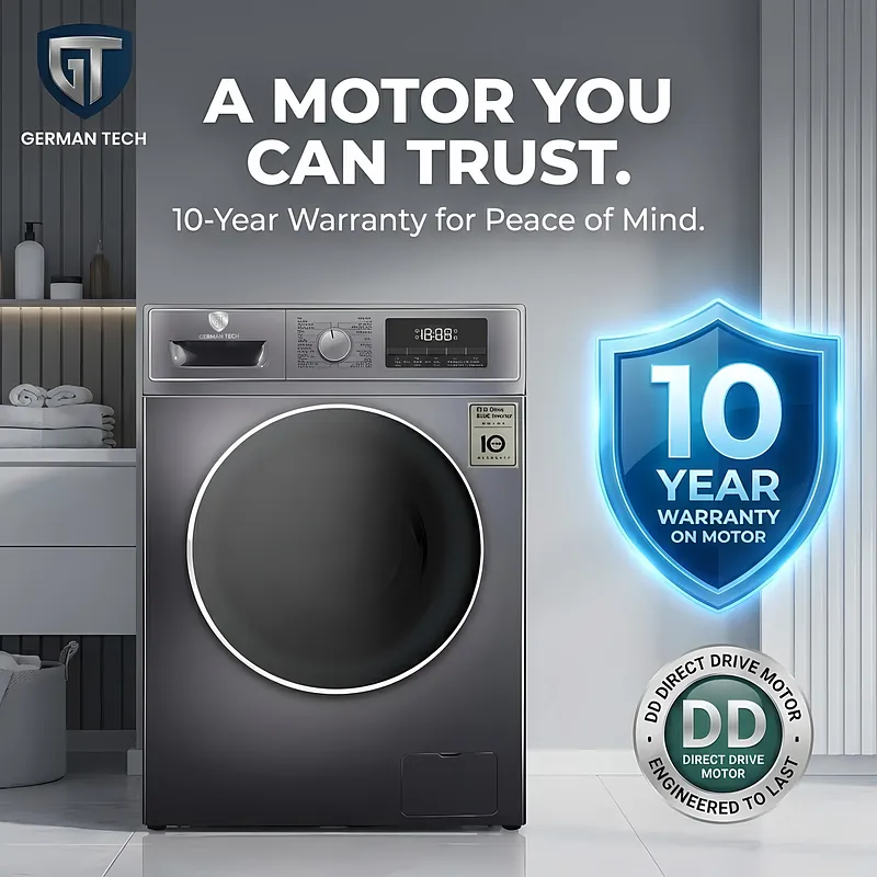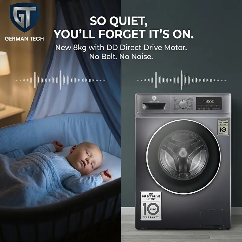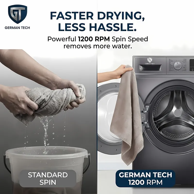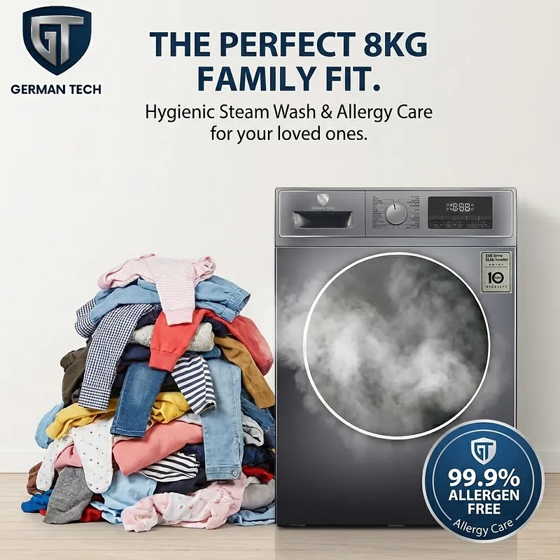 Make laundry simple, efficient, and gentle — choose the German Tech GT-8KG Washing Machine today.