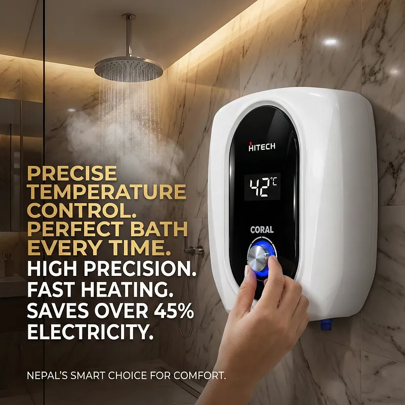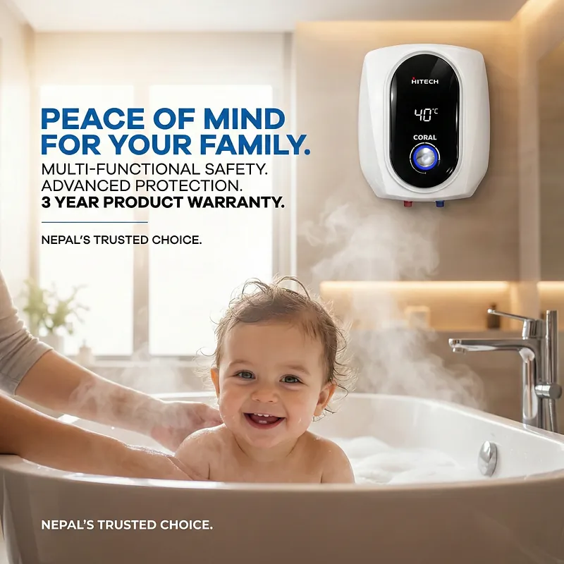 Why Choose Nova Hub? At Nova Hub, we prioritize your family’s comfort. The Hitech Coral Series is “Nepal’s Trusted Choice,” offering a sleek square aesthetic that fits beautifully into contemporary bathroom designs while delivering top-tier performance. Secure your next lifestyle upgrade today with a geyser that is as smart as it is powerful.