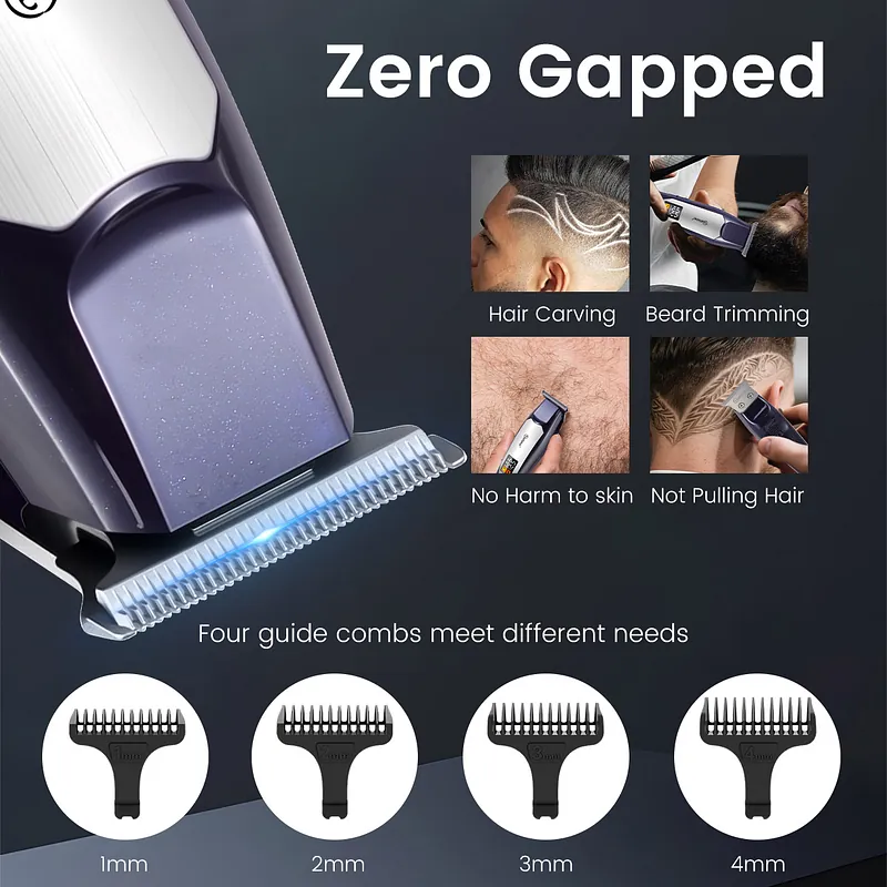 âś”0mm Cutting with Multiple Cutting Lengths – The hair clipper is equipped with 4 attachment combs (1mm/2mm/3mm/4mm). Users can change different combs according to personal needs. You can also use the grooming kit without the comb for a 0mm trim. Trimming Range: 0mm to 4mm.