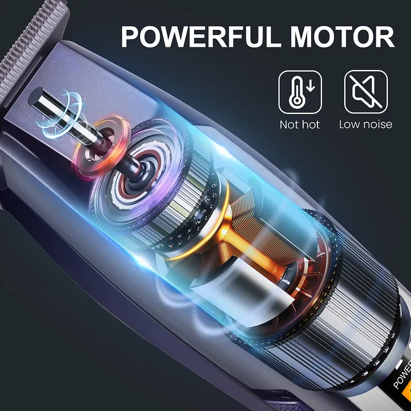 ✔Powerful yet Quiet Clipper Motor: With a heavy-duty motor, the hair cutting machine enables you to cut through various types of hairs with ease and efficiency. The noise level is lower than 60 dB, quiet for home haircutting. You get in box 1x trimmer/1x USB type-c charging cable/1xCleaning brush/4x guide comb (1mm/2mm/3mm/4mm)