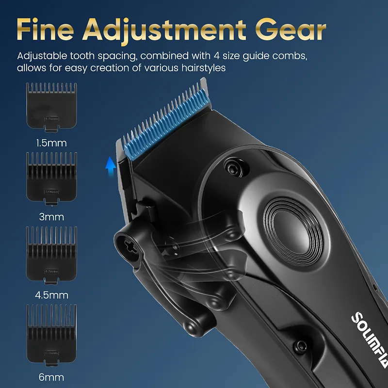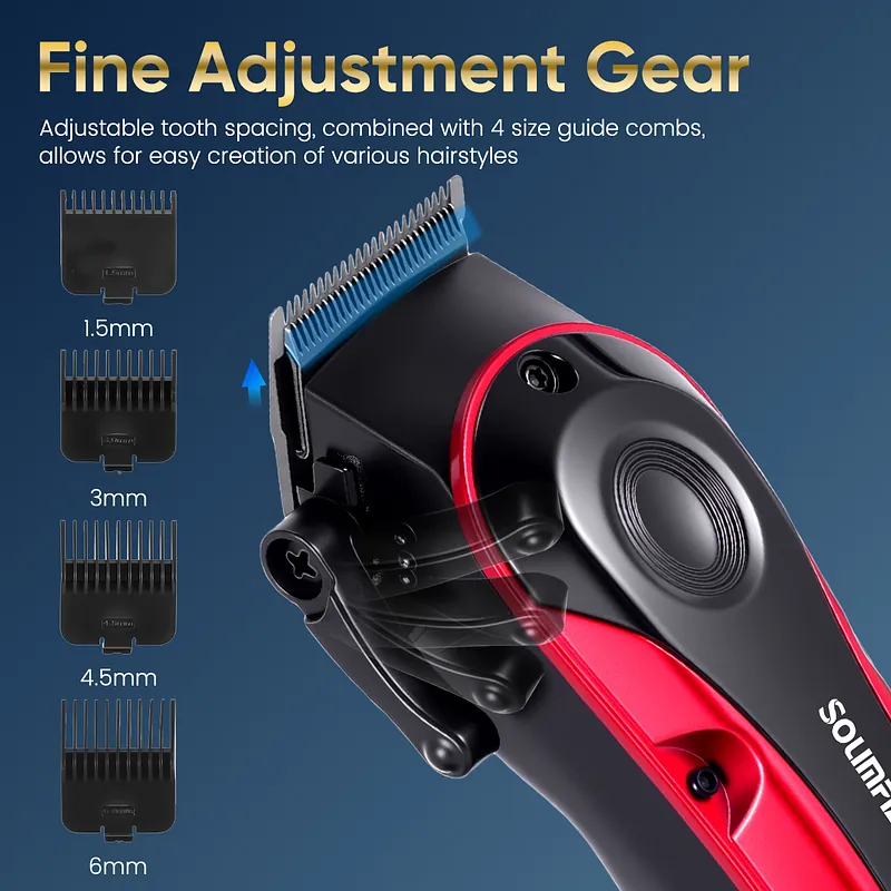 ✔Multiple Cutting Lengths – The hair clipper is equipped with 4 attachment combs (1.5mm/3mm/4.5mm/6mm). Users can change different combs according to personal needs. You can also use the grooming kit without the comb for a close trim.
